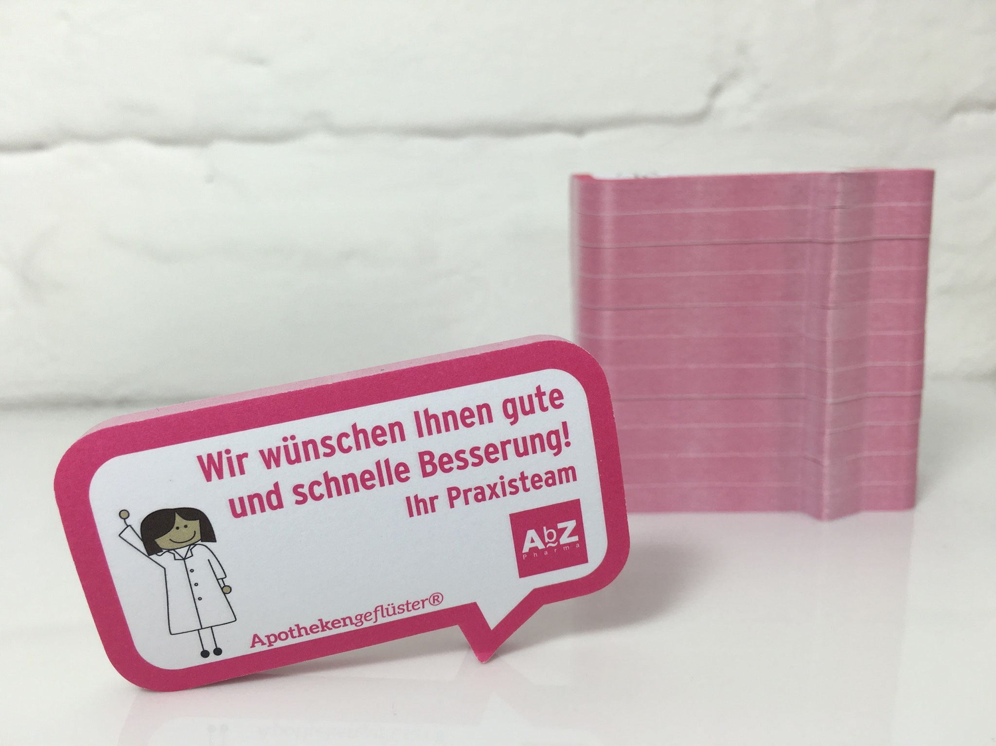 „Im Januar 2016 haben wir in einem Informationsschreiben an Apotheken Dosierungsblöckchen von Apothekengeflüster beigelegt. Wie wir finden, ein schönes und zugleich sinnvolles Geschenk an die Apothekenmitarbeiter. Vielen Dank für die gute Zusammenarbeit.“